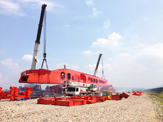 公司現有SLJ900流動式架橋機(運架一體機)3臺、SXJ900架橋機2臺、ME900提梁機2臺、MG450提梁機2套、SXJ550架橋機2臺、SXJ900T低位架橋機(分體式過隧道架橋機)1臺、900噸小輪胎運梁車(過隧道運梁車)1臺、550噸架橋機和550噸運梁車各2臺、SGTJ170公鐵二用架橋機及運梁車2臺套等一系列高速鐵路建設施工設備,以及各類安裝和施工配套設備。